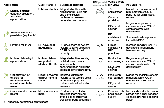 不同的長(zhǎng)時(shí)儲(chǔ)能用例可以使廣泛的客戶受益,包括公用事業(yè)公司、獨(dú)立電力生產(chǎn)商、輸配電系統(tǒng)運(yùn)營(yíng)商、具有環(huán)境、社會(huì)和企業(yè)治理承諾的企業(yè)、對(duì)正常運(yùn)行時(shí)間有高要求的行業(yè)、孤立的島嶼社區(qū)和有后備需求的公共和醫(yī)療保健服務(wù)。雖然共同的主題是需要電力彈性,但每個(gè)用例都是由當(dāng)?shù)胤ㄒ?guī)驅(qū)動(dòng)的。例如,具有電網(wǎng)系統(tǒng)運(yùn)行功能的公用事業(yè)公司可能會(huì)通過長(zhǎng)時(shí)儲(chǔ)能應(yīng)用程序來滿足能源轉(zhuǎn)移、容量提供、輸配電優(yōu)化和穩(wěn)定服務(wù)提供的需求。而企業(yè)參與者(例如可再生能源開發(fā)商或所有者或工業(yè)客戶)更有可能對(duì)長(zhǎng)時(shí)儲(chǔ)能確定電力采購(gòu)協(xié)議(PPA)或優(yōu)化能源采購(gòu)以在偏遠(yuǎn)或不可靠電網(wǎng)中承購(gòu)的能力更感興趣。