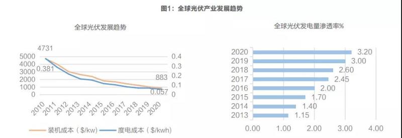 2020年多晶硅、硅片、電池片、組件產(chǎn)量分別占全球的76%、97%、83%、76%。隨著核心技術及設備國產(chǎn)化突破,工業(yè)化規(guī)模大幅度提升,2021年進入平價上網(wǎng)時代已得到行業(yè)內(nèi)公認。但光伏產(chǎn)業(yè)成為能源供應主動脈,在無補貼下,除面對火電行業(yè)平價上網(wǎng)外,還要滿足電網(wǎng)輸送體系穩(wěn)定性要求。