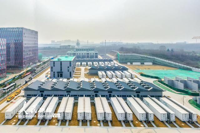 位于南京市江北新區(qū)新科十二路的江北儲(chǔ)能電站占地51.26畝,最大充放電功率110.88兆瓦,存儲(chǔ)容量193.6兆瓦時(shí),可儲(chǔ)存約19萬(wàn)度電。儲(chǔ)能電站在用電低谷時(shí)“插在”電網(wǎng)上充電,在用電高峰時(shí)釋放電力,有效填補(bǔ)電力缺口。杜懿攝(人民圖片網(wǎng))