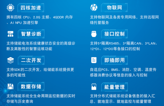 ES-CCU 儲(chǔ)能系統(tǒng)一體化集控單元是集裝箱儲(chǔ)能系統(tǒng)或分布式儲(chǔ)能柜系統(tǒng)的就地監(jiān)控和管理單元,具備儲(chǔ)能系統(tǒng)各部件信息的實(shí)時(shí)一體化匯聚、顯示、聯(lián)控等功能,具備就地監(jiān)控保護(hù)和能量管理的功能,支持 IEC61850、MODBUS、IEC104、MQTT 等多種通訊規(guī)約,具備儲(chǔ)能設(shè)備和電池系統(tǒng)安全、健康等運(yùn)行工況的高級(jí)診斷分析功能,具備就地智慧運(yùn)維功能,是儲(chǔ)能系統(tǒng)集約化、智能化、一體化的低成本的就地集控管理設(shè)備。