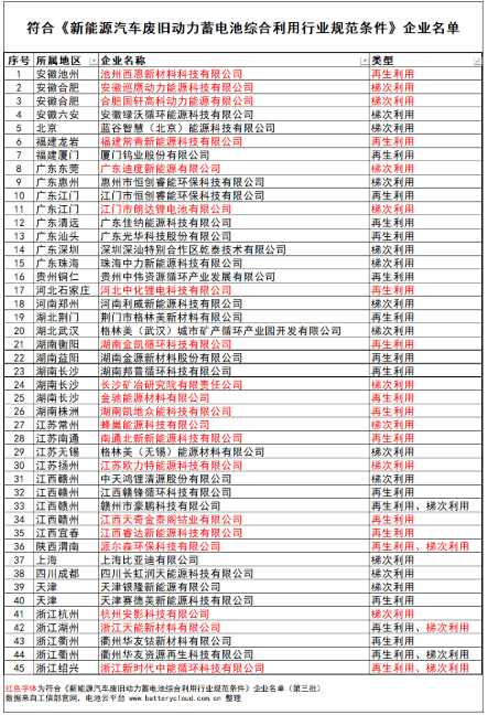 2018年9月5日、2020年12月16日、2021年12月16日,工信部先后發(fā)布了《新能源汽車廢舊動力蓄電池綜合利用行業(yè)規(guī)范條件》企業(yè)名單公告,第一批、第二批、第三批“正規(guī)軍”相繼誕生。