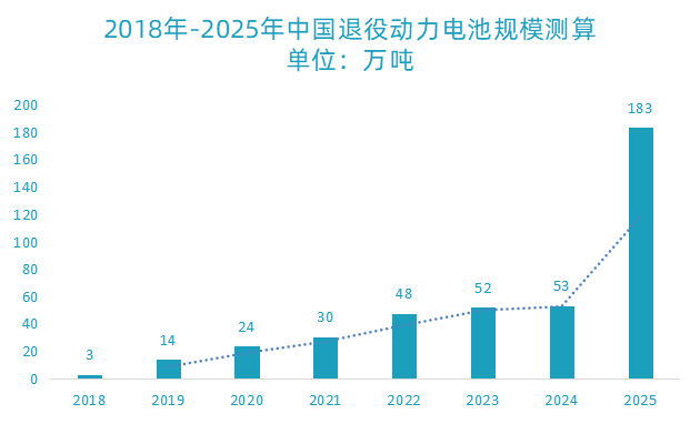 根據(jù)新能源汽車年裝機量,按120wh/kg電池能量密度,使用4年后退役回收,粗算退役電池規(guī)模。2020年約有24萬噸動力電池退役。