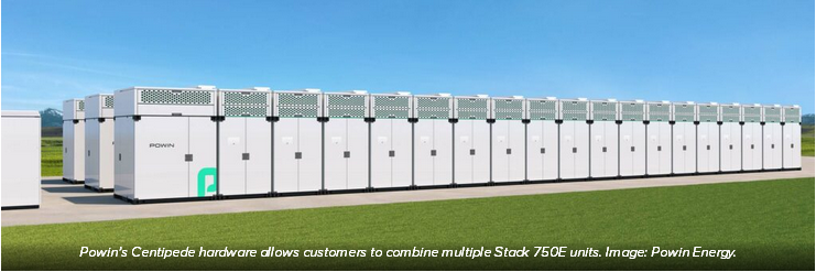 Powin Energy公司的Centipede電池儲能系統(tǒng)允許客戶組合多個Stack 750E儲能單元。