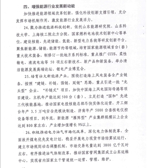 ——膠東半島核電基地.全力推進(jìn)海陽(yáng)、榮成、招遠(yuǎn)等核電廠 址開(kāi)發(fā),建成榮成高溫氣冷堆示范工程,推進(jìn)國(guó)和一號(hào)示范工程建設(shè),開(kāi)工海陽(yáng)二期工程,深化招遠(yuǎn)一期、榮成石島灣擴(kuò)建一期 前期工作,在運(yùn)在建核電裝機(jī)達(dá)到700萬(wàn)千瓦左右。加強(qiáng)儲(chǔ)備廠 址保護(hù)和研究論證。積極開(kāi)展海陽(yáng)核電跨區(qū)域供暖研究,適時(shí)啟動(dòng)工程建設(shè)。