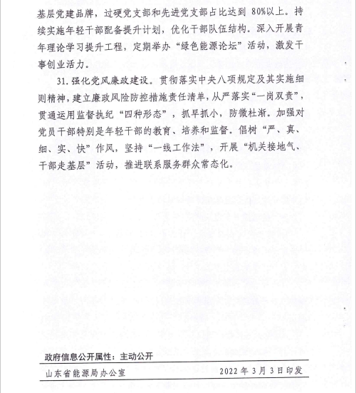為統(tǒng)籌做好2022年全省能源工作,加快推動(dòng)新時(shí)代能源行業(yè)高質(zhì)量發(fā)展,省能源局研究制定了《2022年全省能源工作指導(dǎo)意見(jiàn)》?,F(xiàn)印發(fā)你們,請(qǐng)認(rèn)真組織實(shí)施。