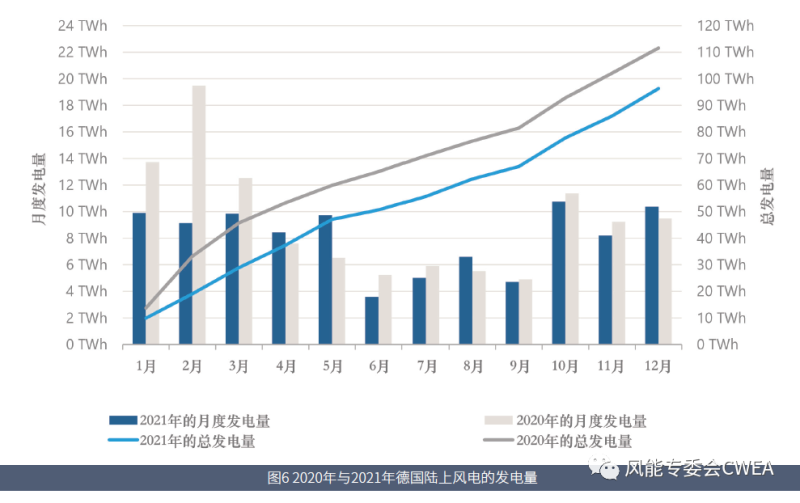 圖6 2020年與2021年德國陸上風電的發(fā)電量
