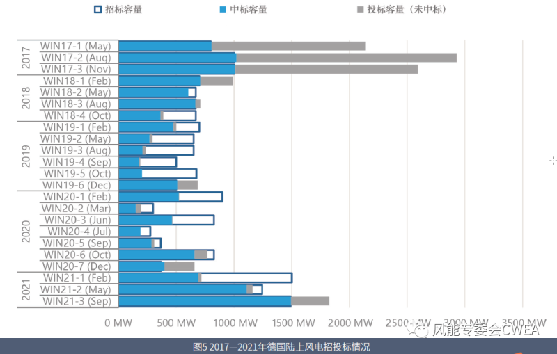 圖5 2017—2021年德國陸上風電招投標情況
