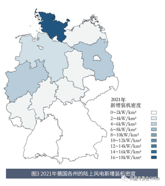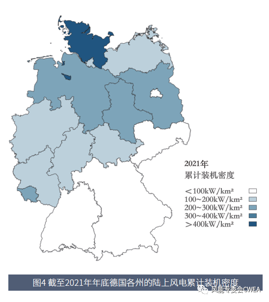 圖4 截至2021年年底德國各州的陸上風電累計裝機密度