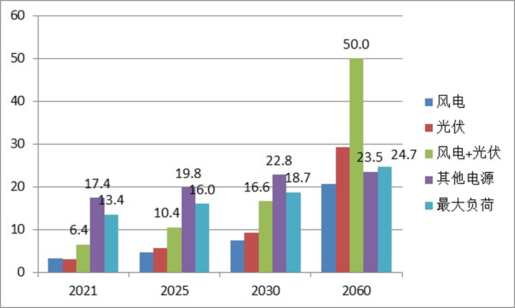 圖2 既有情景我國電源結(jié)構(gòu)及最大負荷預測