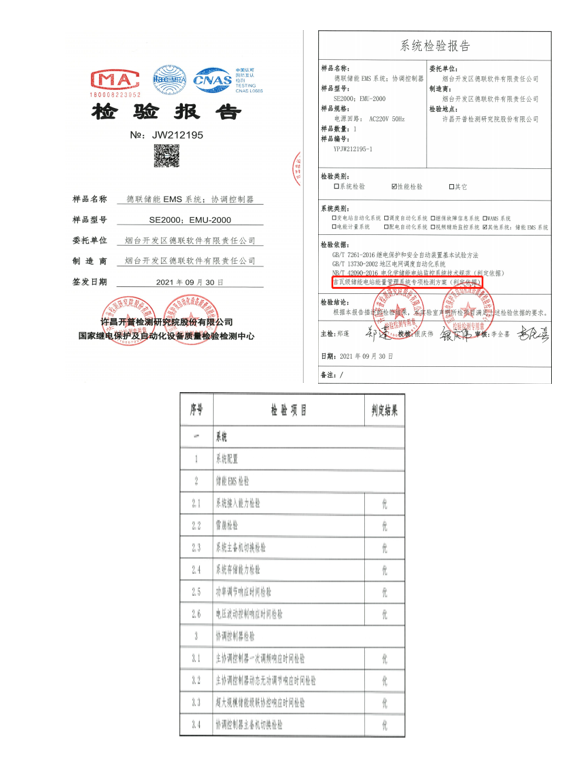 德聯(lián)儲能EMS系統(tǒng)可以根據(jù)儲能系統(tǒng)的規(guī)模,進行靈活配置,既支持集裝箱內(nèi)就地小型EMS系統(tǒng),也支持100MW以上大型儲能EMS系統(tǒng)(目前已經(jīng)參與3個100MWH和2個200MWH儲能項目)。德聯(lián)軟件參與了國網(wǎng)GWH級儲能電站EMS能量管理系統(tǒng)檢測,數(shù)據(jù)全優(yōu)。