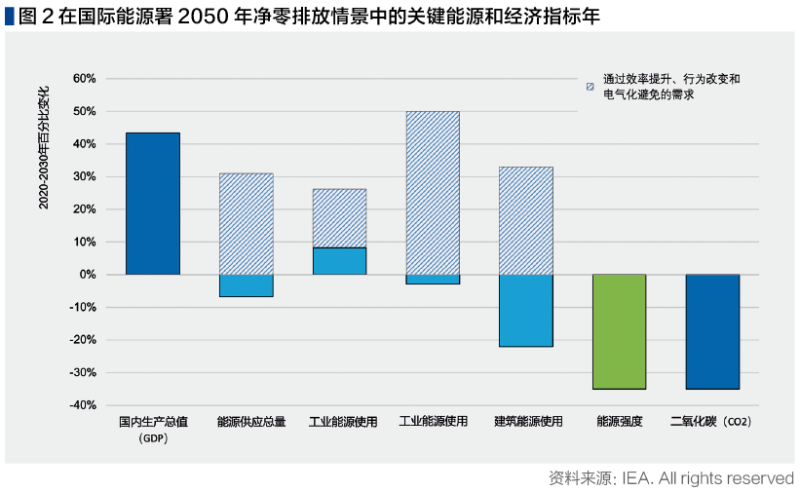 圖片在全球范圍內(nèi),為了在本世紀(jì)中葉達(dá)到凈零排放,需要在未來十年內(nèi)將能源強(qiáng)度改善率提高一倍