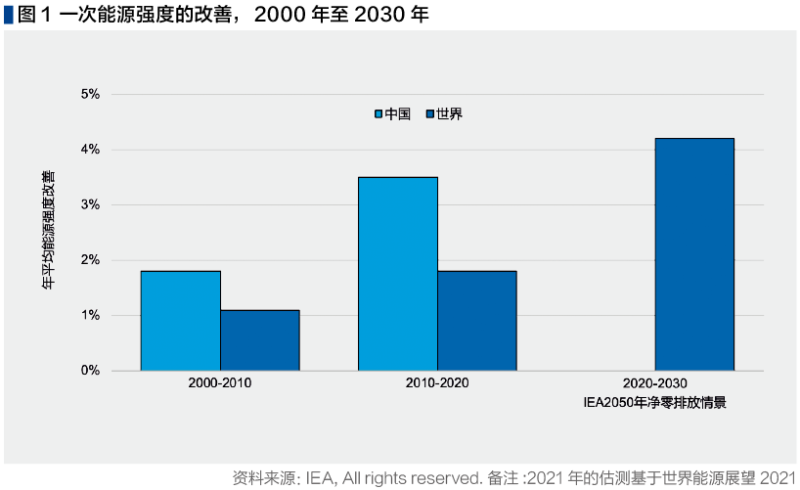 改善能源強(qiáng)度將為助力中國(guó)實(shí)現(xiàn)在2030年前二氧化碳排放達(dá)到峰值,并在2060年前實(shí)現(xiàn)碳中和的目標(biāo)方面發(fā)揮關(guān)鍵作用