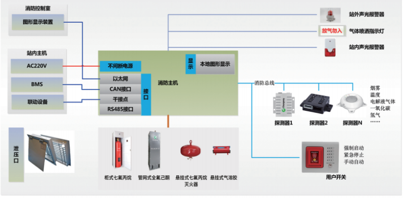 致力于絕對安全的儲能智慧消防系統(tǒng),產(chǎn)品具有多場景儲能系統(tǒng)應(yīng)用運維管理的立體預警及多級聯(lián)動策略。系統(tǒng)由兩部分組成:自動消防主站后臺系統(tǒng)和儲能站自動消防系統(tǒng)組成。自動消防主站后臺系統(tǒng)由服務(wù)器、儲能站消防報警系統(tǒng)軟件及聲光報警器組成;儲能站自動消防系統(tǒng)由消防主機、復合型可燃氣體探測器、站外聲光報警、站內(nèi)聲光報警、放氣勿入指示、緊急啟停開關(guān)、滅火裝置、管道削防器材、應(yīng)急外部接組成。
