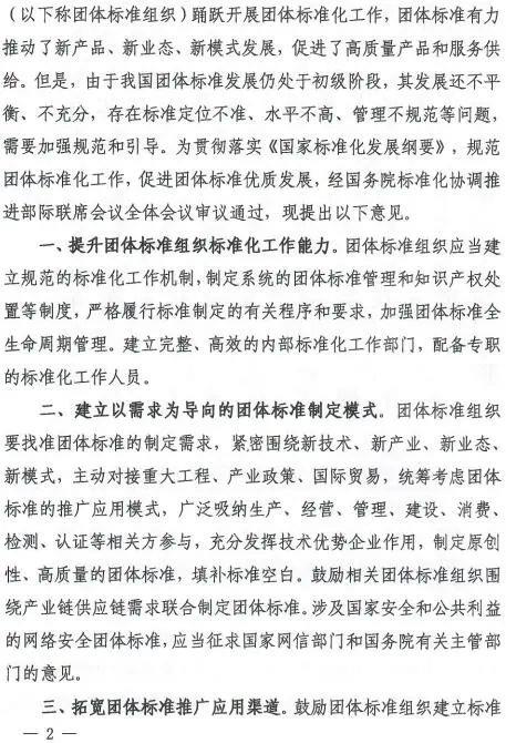 國家標準化管理委員會等十七部門聯(lián)合印發(fā)《關于促進團體標準規(guī)范優(yōu)質(zhì)發(fā)展的意見》