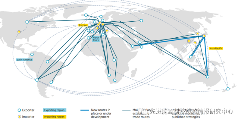 圖2不斷擴(kuò)大的氫能貿(mào)易路線、計(jì)劃和協(xié)議網(wǎng)絡(luò)