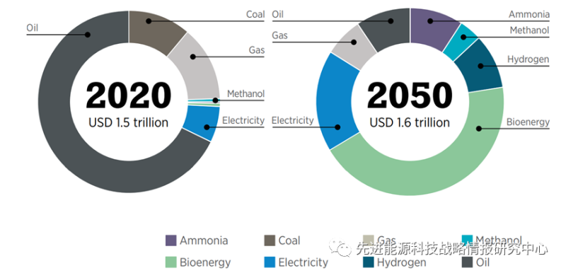 圖1 2020-2050年能源商品貿(mào)易結(jié)構(gòu)的變化