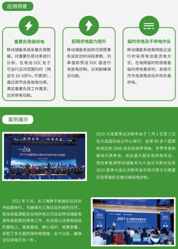 冬奧賽事、生活保障用電要求非常高,恒龍新能源提供的多臺移動儲能保電設(shè)備作為冬奧會供電保障工作的利器,不僅具有低噪音、零污染、電能優(yōu)質(zhì)等優(yōu)勢,還可實現(xiàn)離并網(wǎng)毫秒級切換,能有效支持應(yīng)急備電供電和配網(wǎng)臺區(qū)應(yīng)急供電。