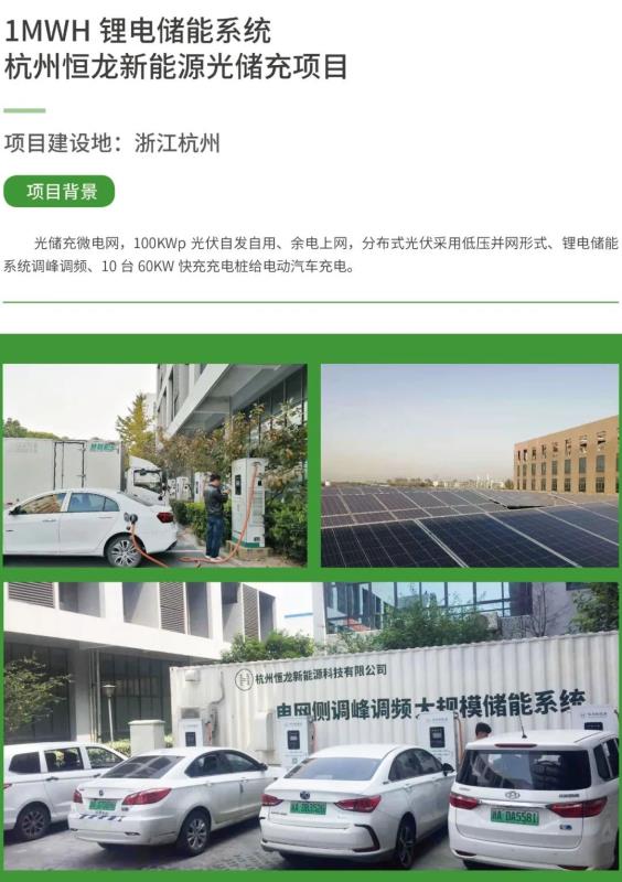 杭州恒龍新能源科技有限公司(簡稱恒龍新能源)公司位于杭州下沙國家經(jīng)濟(jì)技術(shù)開發(fā)區(qū),成立于2015年,是一家集新能源產(chǎn)業(yè)技術(shù)開發(fā)、生產(chǎn)及銷售于一體的高新技術(shù)企業(yè)。專致于提供電池管理系統(tǒng)的應(yīng)用解決方案、儲能集裝箱系統(tǒng)集成解決方案、移動儲能電源車解決方案、智能電網(wǎng)、能源服務(wù)、大數(shù)據(jù)分析等能源領(lǐng)域解決方案。公司產(chǎn)品涵蓋儲能電站、分布式微網(wǎng)、移動儲能電源車系統(tǒng)以及家庭儲能系統(tǒng)等儲能領(lǐng)域應(yīng)用。公司主要客戶為國家電網(wǎng)公司、地方省政府、開發(fā)區(qū)、大型企業(yè)用戶等。恒龍新能源大力支持全國新能源發(fā)展,助推電力綠色轉(zhuǎn)型,公司堅持走能源綜合利用的道路,實現(xiàn)能源的可復(fù)制,為新能源產(chǎn)業(yè)的發(fā)展貢獻(xiàn)智慧和力量。