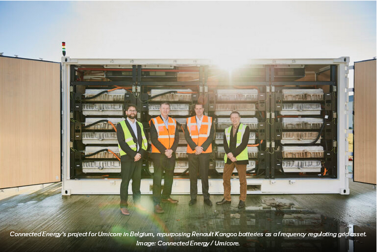 Connected Energy公司在比利時(shí)采用雷諾Kangoo二次電池構(gòu)建的Umicore電池儲(chǔ)能項(xiàng)目。