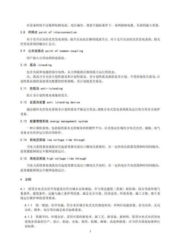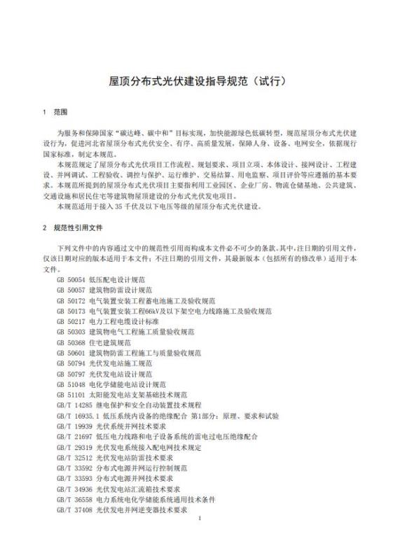 本規(guī)范適用于接入35千伏及以下電壓等級的屋頂分布式光伏建設(shè)。