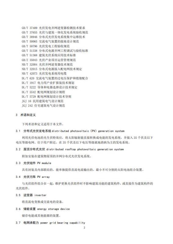 本規(guī)范所提到的屋頂分布式光伏項目主要指利用工業(yè)園區(qū)、企業(yè)廠房、物流倉儲基地、公共建筑、交通設(shè)施和居民住宅等建筑物屋頂建設(shè)的分布式光伏發(fā)電項目。