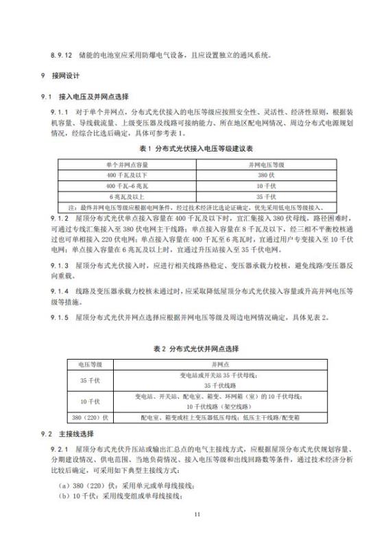 配套儲能原則上應(yīng)在主要并網(wǎng)點集中建設(shè),優(yōu)先采用380伏并網(wǎng),并網(wǎng)點應(yīng)在分布式光伏并網(wǎng)點附近,以解決部分臺區(qū)電壓偏差、設(shè)備重過載、就地?zé)o法消納等問題。