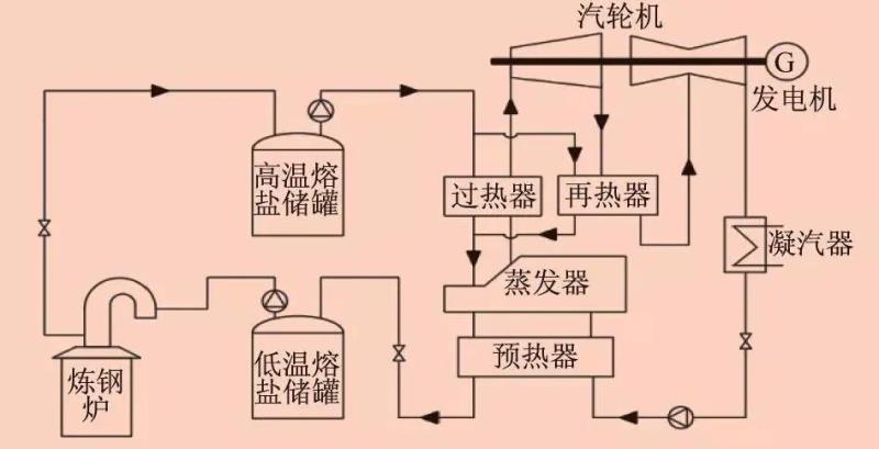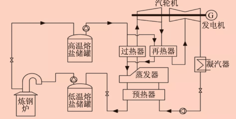 圖4 鋼鐵爐熔鹽余熱回收發(fā)電系統(tǒng)原理