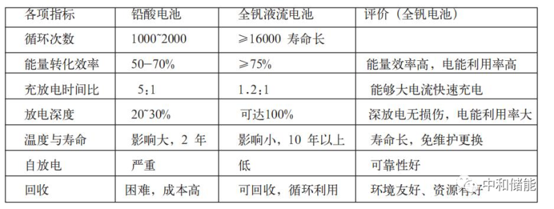 全釩液流電池和傳統(tǒng)鉛酸電池性能對(duì)比[3]