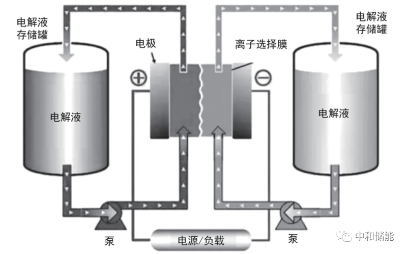 在對(duì)儲(chǔ)能時(shí)間的不斷要求下,新型儲(chǔ)能技術(shù)中的液流電池展現(xiàn)出獨(dú)特的優(yōu)勢(shì)。液流電池作為一種新型二次電池,通過化學(xué)活性物質(zhì)價(jià)態(tài)的可逆變化實(shí)現(xiàn)電池的充放電,進(jìn)而達(dá)到化學(xué)能與電能相互轉(zhuǎn)化的目的。