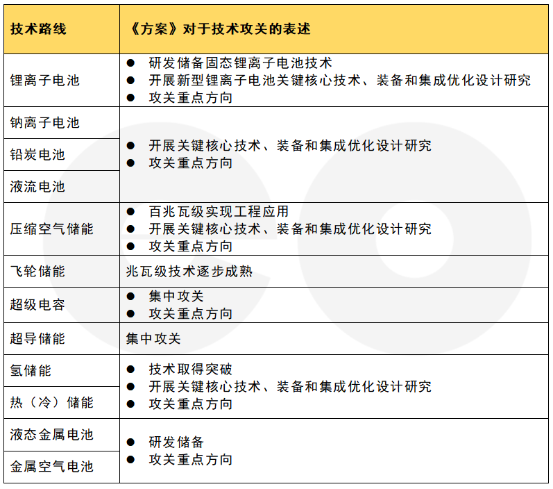 此次《方案》最鮮明的特點在于強調(diào)新型儲能技術(shù)路線的多元化發(fā)展。包括電化學(xué)儲能、機械儲能、儲熱、電磁儲能在內(nèi)多種類別的十余種技術(shù)均在文件中被提及。