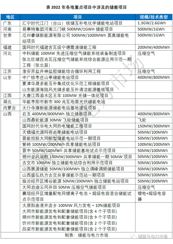 盡管多數(shù)項(xiàng)目不會(huì)在2022年全容量建成投運(yùn),但無(wú)疑會(huì)成為近期各地儲(chǔ)能容量增長(zhǎng)的有力支撐。
