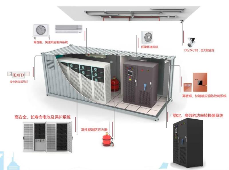 在提高可再生清潔能源的高效利用方面,小型化、可移動、集成式集裝箱化學(xué)儲能系統(tǒng)正式被廣泛運用。集裝箱化學(xué)儲能系統(tǒng)也被稱為儲能柜,其內(nèi)部主要由電池組、電池管理系統(tǒng)(BMS)、儲能變流器(PCS)及輔助控制系統(tǒng)(溫控系統(tǒng)、消防系統(tǒng)等)組成。