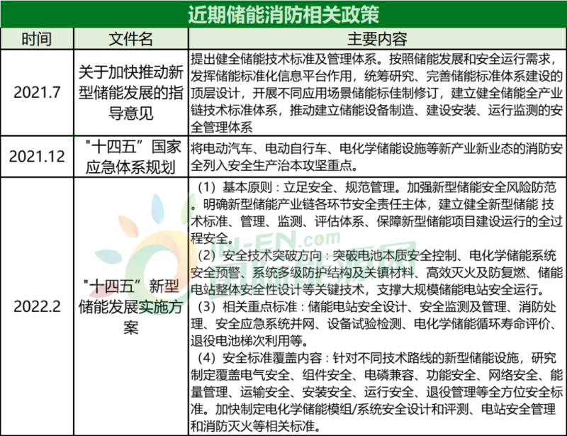2021年12月30日國家將電化學儲能設施消防安全納入《“十四五”國家應急體系規(guī)劃》,作為安全生產(chǎn)攻堅重點。