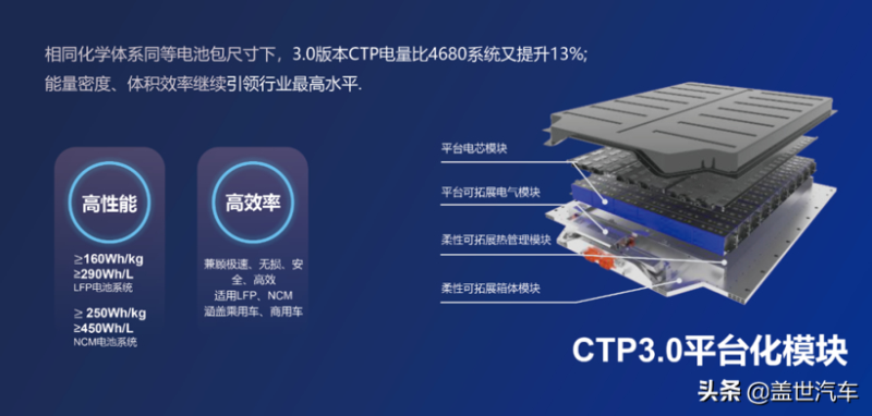 蓋世汽車最新獲悉,寧德時代通過不斷技術迭代,推出了第三代CTP技術,內(nèi)部稱其為“麒麟電池”,該電池系統(tǒng)重量、能量密度及體積能量密度繼續(xù)引領行業(yè)最高水平。在相同的化學體系、同等電池包尺寸下,麒麟電池包的電量,相比4680系統(tǒng)可以提升13%。