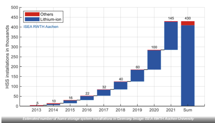 自從2013年以來(lái),德國(guó)住宅儲(chǔ)能系統(tǒng)的部署數(shù)量一直在增長(zhǎng),工業(yè)儲(chǔ)能系統(tǒng)(ISS)也是如此,盡管其增長(zhǎng)速度較慢。