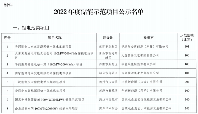 關(guān)于2022年度儲(chǔ)能示范項(xiàng)目的公示