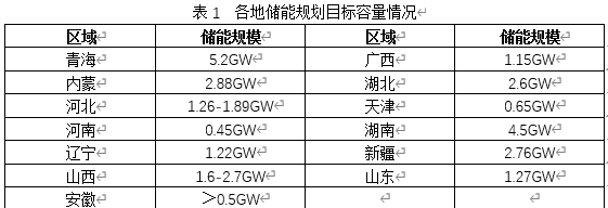 截至目前,據(jù)不完全統(tǒng)計(jì),全國(guó)已有十余省市正式對(duì)外公布了儲(chǔ)能發(fā)展規(guī)劃,規(guī)劃的新型儲(chǔ)能總裝機(jī)規(guī)模已超過(guò)30GW(部分?。ㄊ校┮?guī)模如表1所示)。