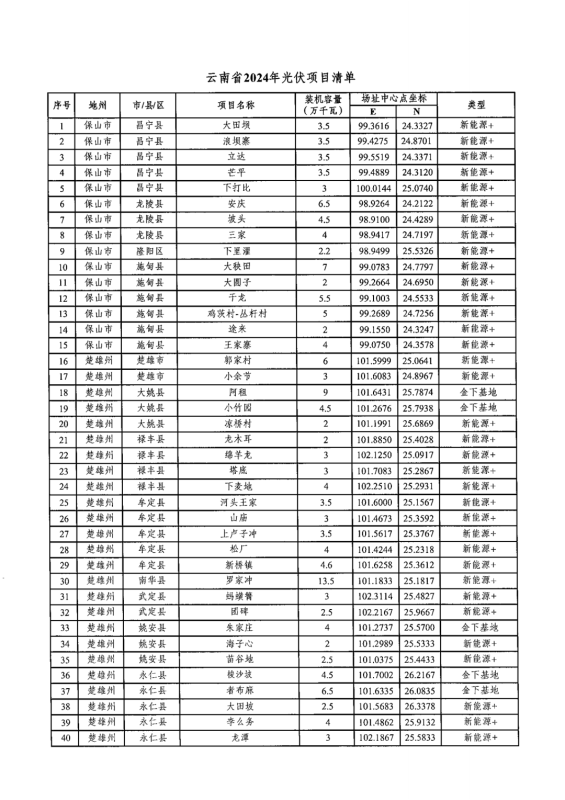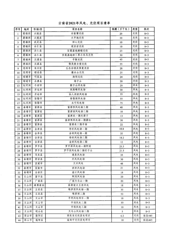 此外,值得注意的是,2021年云南省2021年風(fēng)電、光伏項目清單共1858.9萬千瓦,其中光伏966.3萬千瓦;風(fēng)電892.6萬千瓦。統(tǒng)計下來云南省2021年-2024年共計7308.9萬千瓦新能源項目。