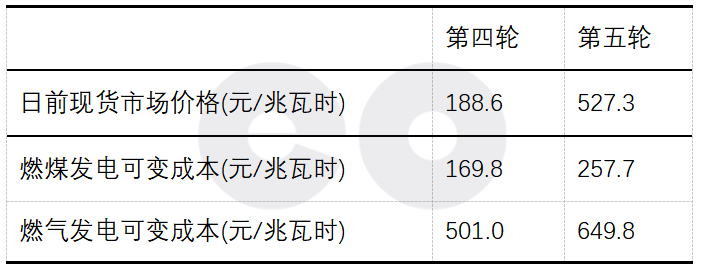 表1列出了第四、第五輪試運(yùn)行期間的燃料成本以及平均市場價格。值得注意的是,由于廣東的容量補(bǔ)償機(jī)制,燃?xì)鈾C(jī)組每發(fā)1MWh的電能量能獲得200元的補(bǔ)貼,因此燃?xì)鈾C(jī)組的真實(shí)邊際成本應(yīng)當(dāng)比表格中的數(shù)字低200元。研究發(fā)現(xiàn),相較于第四輪試運(yùn)行,第五輪市場價格增量的65%來自剩余負(fù)荷的增加,其余大部分則來自燃料成本的增加。