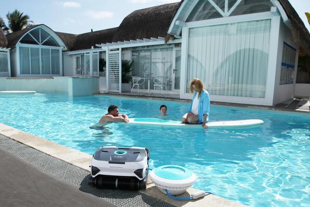 Aiper的泳池機器人通過算法和APP交互,能夠?qū)崿F(xiàn)自動路徑規(guī)劃,設(shè)置重點清潔區(qū)域,進行預(yù)約打掃。在工作時,機器人采用的三軸電機技術(shù),通過滾刷和過濾系統(tǒng)對泳池底部和側(cè)壁進行清潔,吸附水中和地漏等處的明顯雜質(zhì),清潔度更高,也更為節(jié)能。