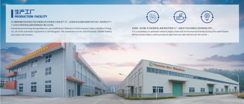坐落在福建省漳州市長(zhǎng)泰經(jīng)濟(jì)開(kāi)發(fā)區(qū)內(nèi)。建設(shè)生產(chǎn)儲(chǔ)能型鋰釔電池單體10000安時(shí)到1000安時(shí)、700到100安時(shí)等型號(hào)規(guī)格的“雷天”(Thunder sky)、“溫斯頓”(Winston)品牌的水溶性鋰動(dòng)力電池,自1999年以來(lái)先后得到國(guó)際級(jí)“AXA”(安盛)保險(xiǎn)公司長(zhǎng)年承擔(dān)產(chǎn)品意外保險(xiǎn)。水性鋰動(dòng)力電池暢銷(xiāo)歐美70多個(gè)國(guó)家、非亞各國(guó)深受用戶信賴,產(chǎn)品供不應(yīng)求。