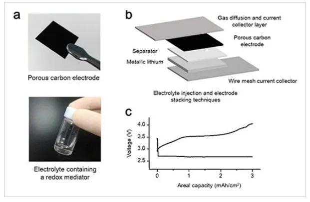 (a)日本NIMS與軟銀集團(tuán)共同合作研發(fā)鋰空氣電池的新材料;(b)NIMS-SoftBank先進(jìn)技術(shù)發(fā)展中心研發(fā)的電池制造技術(shù);(c)能量密度超過(guò)500Wh/kg的鋰空氣電池在室溫環(huán)境下可穩(wěn)定充放電循環(huán)。
