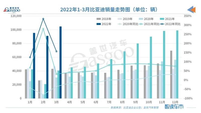 今年3月,比亞迪宣布停產(chǎn)燃油車并全面投入新能源汽車。事實(shí)上,該月比亞迪燃油車銷量已經(jīng)為零,而新能源汽車銷量達(dá)到104,878輛,同比增長157%,環(huán)比提升15%。這也是比亞迪動(dòng)力電池裝機(jī)量能夠穩(wěn)居第二的主要原因。