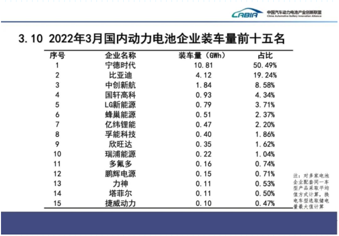 3月國內(nèi)動(dòng)力電池企業(yè)裝車量TOP15;
