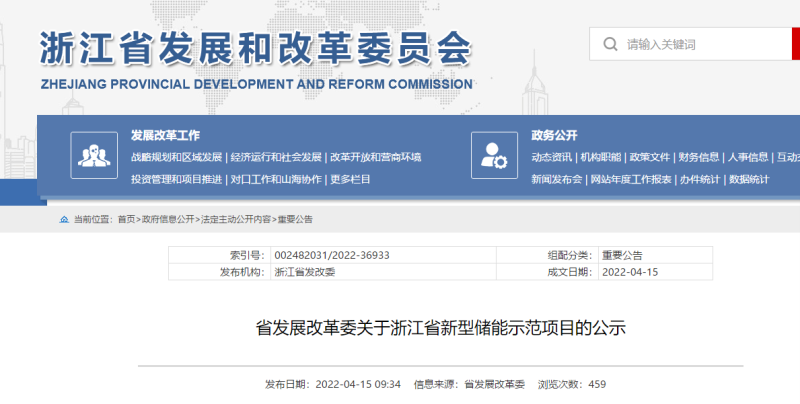 省發(fā)展改革委關(guān)于浙江省新型儲(chǔ)能示范項(xiàng)目的公示