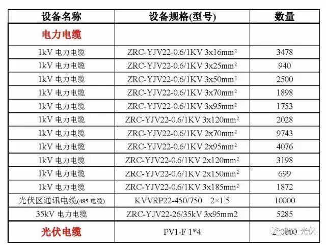 某2017年光伏電站的電氣設(shè)備項(xiàng)目如下表,設(shè)備型號(hào)與工程量與目前差異很大,但設(shè)備種類基本相同。供參考。