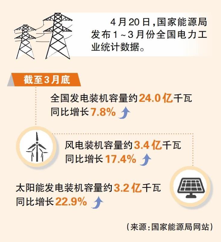 國(guó)家能源局:截至3月底全國(guó)發(fā)電裝機(jī)容量同比增長(zhǎng)7.8%