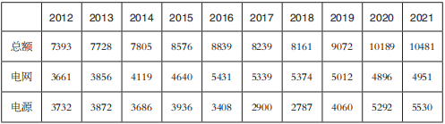 表7 2012~2021年全國電力投資情況(單位:億元)