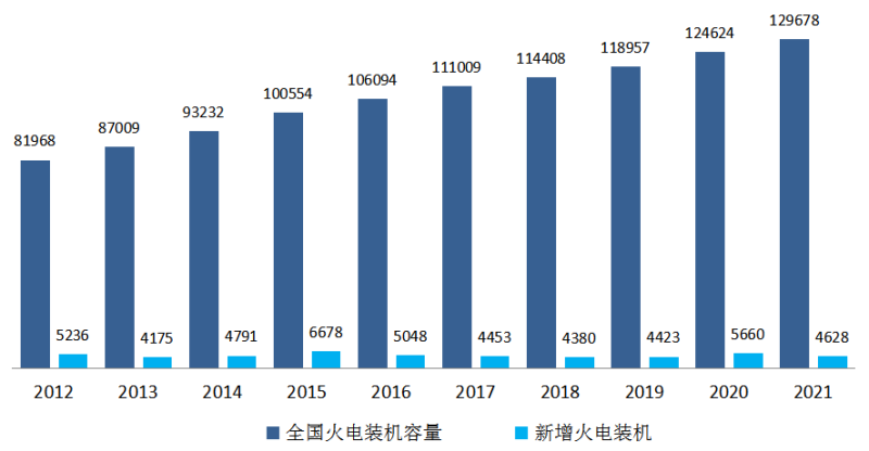 圖9 2012~2021年火電裝機(jī)和新增裝機(jī)情況(單位:萬千瓦)
