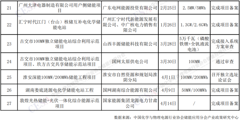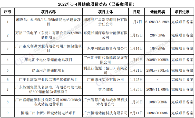 2022年1-4月儲(chǔ)能項(xiàng)目完成備案統(tǒng)計(jì):